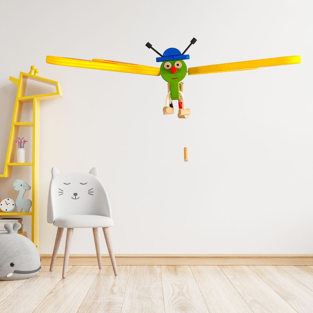 Flying Pink Butterfly is a wooden hand crafted toy and unique kinetic mobile made from european wood, which adds whimsical atmosphere to any nursery, garden or room of the home.The mobile hangs on nylon strings, and has a loop that you hang it by. No batteries are needed, just simply pull down on the string to set it into motion.