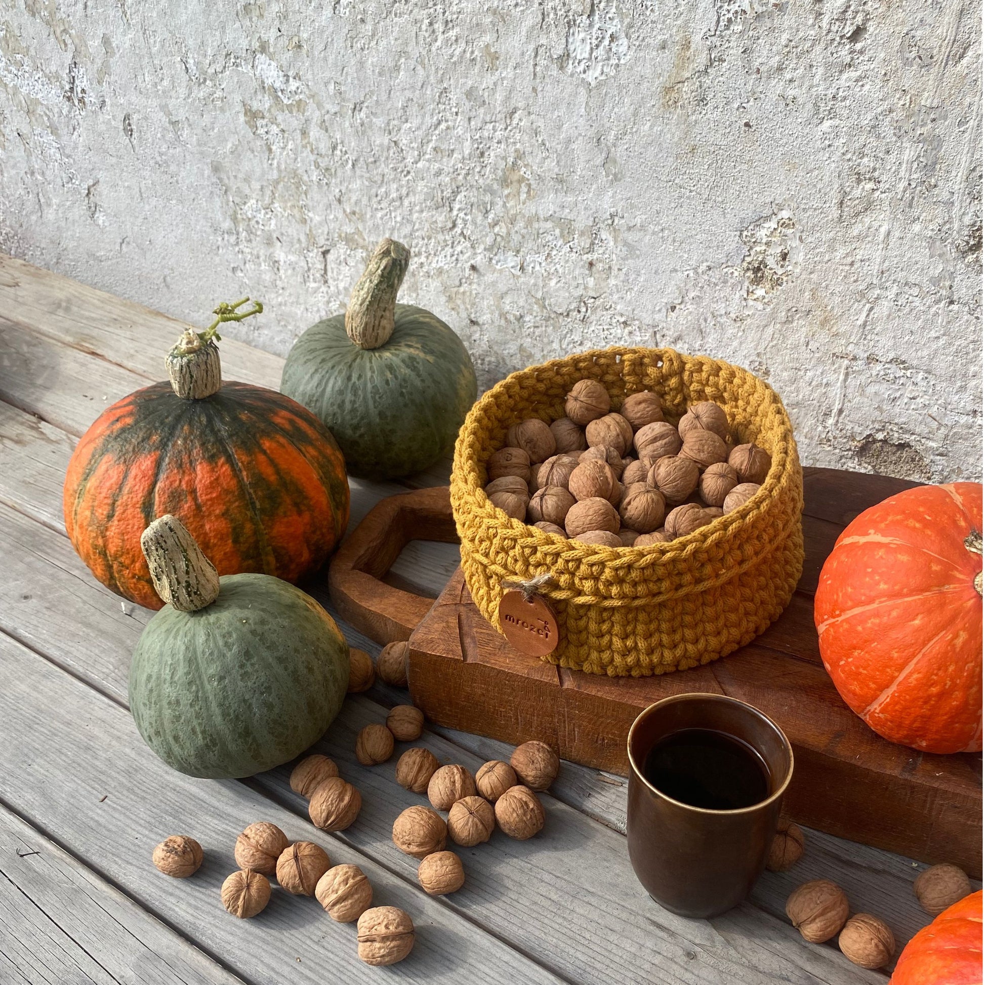 The color of this basket is a reminder of the end of Indian summer and the beginning of autumn. You can use it for autumn decoration or for various small things.