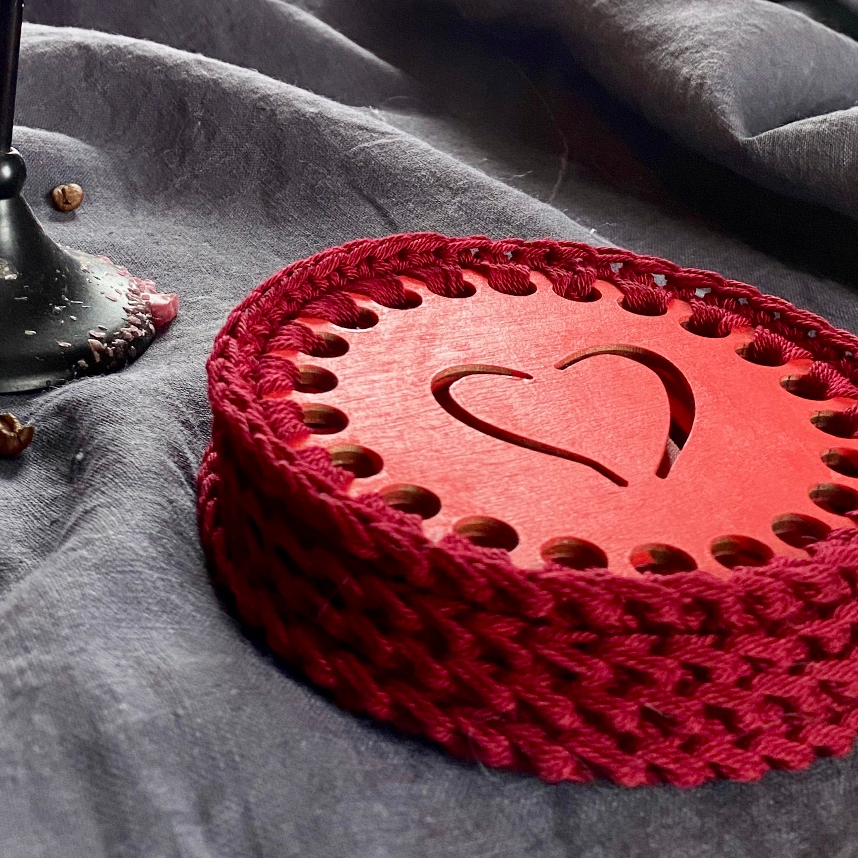 The coasters are made of playwood and are edged with cotton yarn. Price is for one 1 heart coaster. Any other quantity is possible by arrangement.