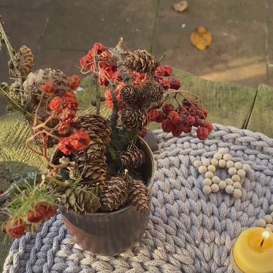 Beautiful crochet placemat in sand color (something between beige and light grey for an idea) will make a beautiful addition to any table. In addition, you can put hot dishes just out of the oven on it, because the placemat is sturdy and strong. It is crocheted from 100% recycled cotton cords. This means that there is nothing but recycled cotton inside these cords either. The diameter of the cord is 5 mm, so it is really a very strong placemat.